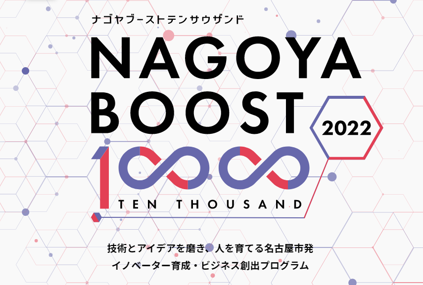 今年も、技術とアイデアを磨き人を育てる名古屋市発イノベーター育成・ビジネス創出プログラム「NAGOYA BOOST 10000 2022」が開催されます。2018年から引き続き、このイベントを協力企業として支援し、当地域におけるイノベーションを共に推進していきます。