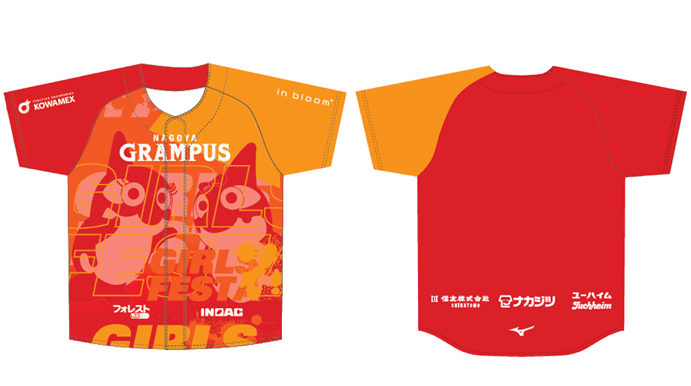 今年のデザインはグランパスカラーと、グランパスくんファミリーの”ガールズ”であるグランパコちゃん・グララを前面に起用したデザインとなっています。ガールズユニフォームを着用して、ガールズフェスタをお楽しみください!